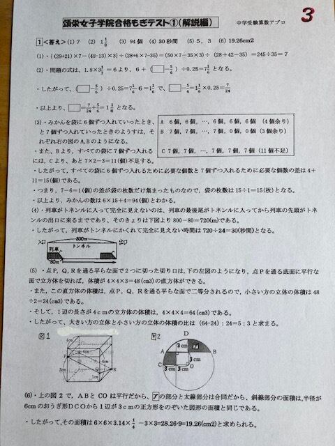 そちらの算数理科の入試にも、プリントが役にたった、やっておいて