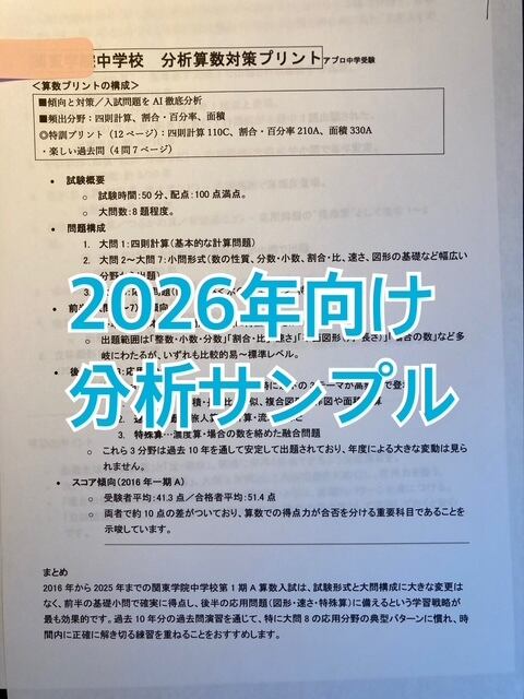 <紙送付>甲陽学院中学校:2026年分析算数対策プリント 新発売