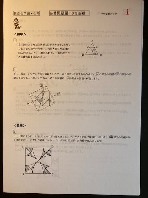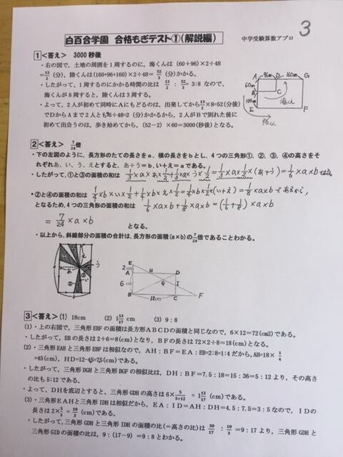 白百合学園中学校 合格対策プリント【算数15ページ】