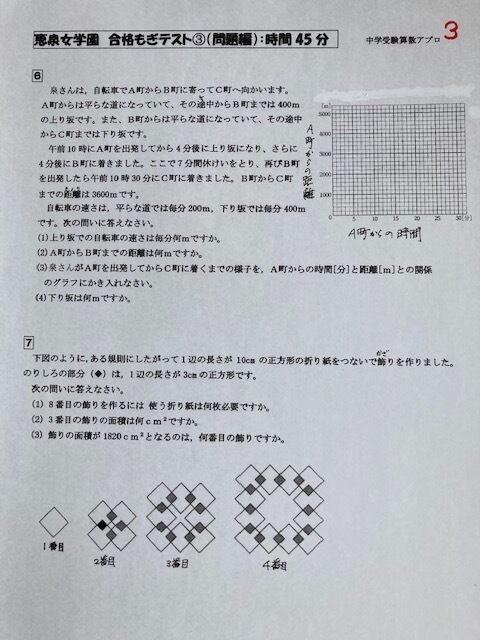・2番(3)が算数特訓プリント240Jの11番(1)予想にそっくり出題(速さ)