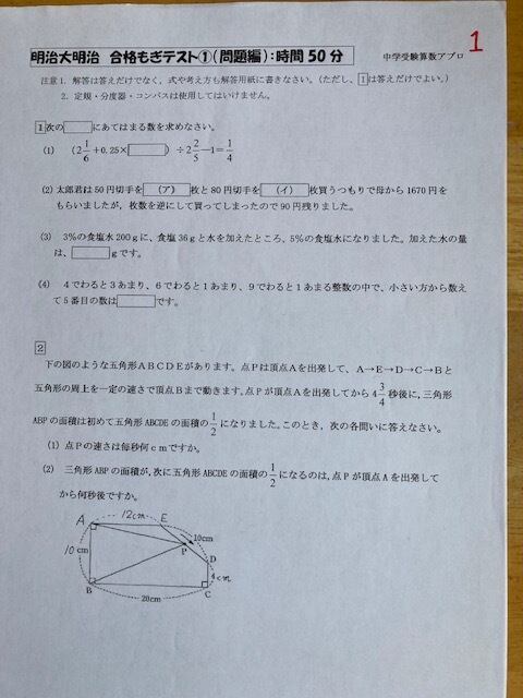 <紙送付>中学受験 明治大学付属明治中学校 2026年合格算数コンプリートプリント