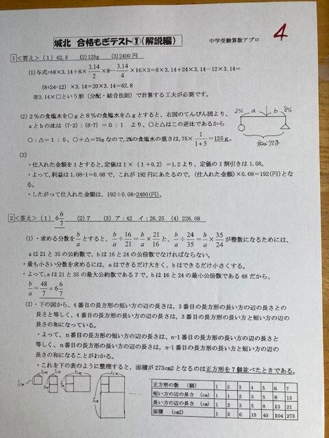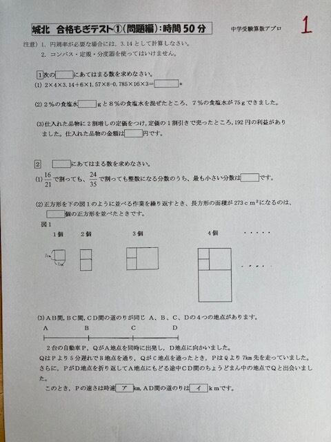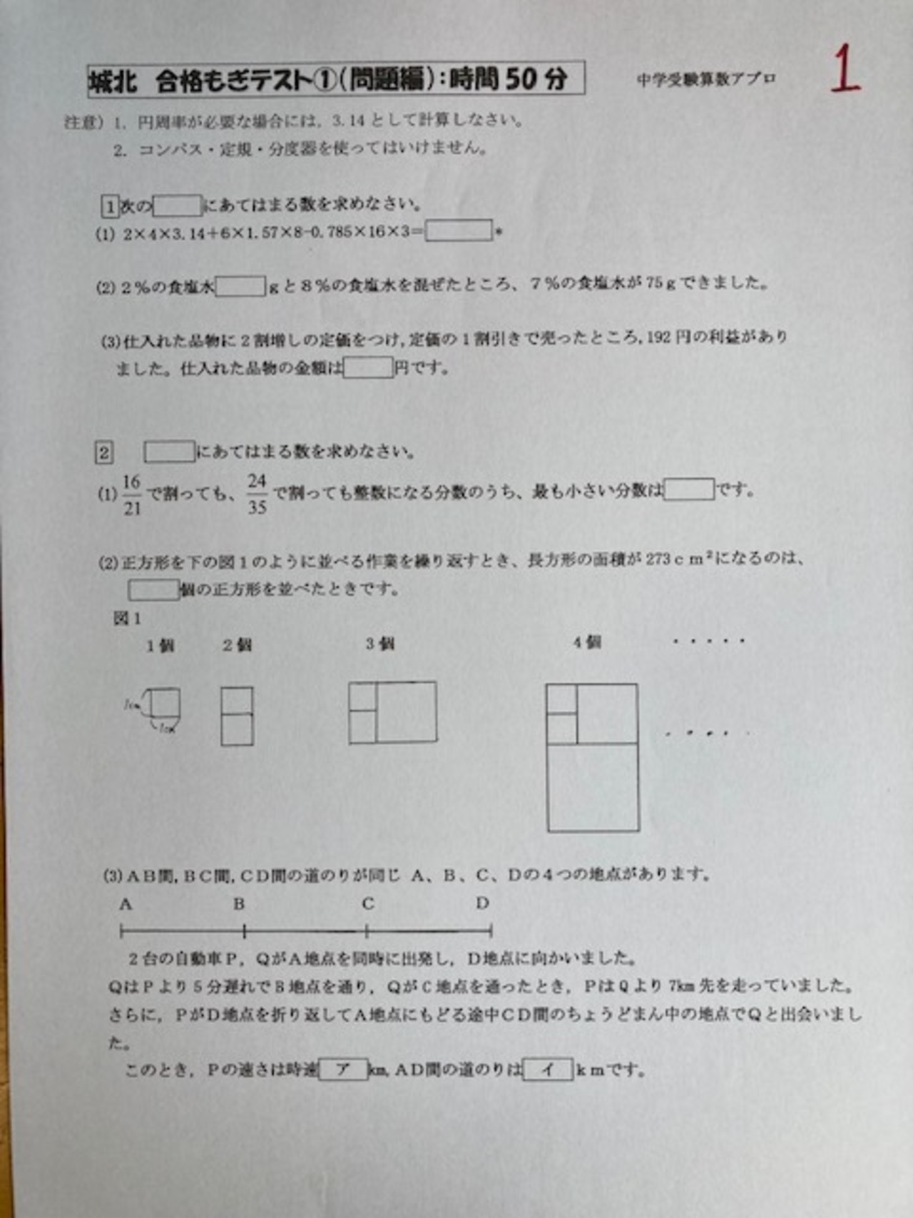 <紙送付>中学受験 城北中学校 2026年合格算数コンプリートプリント