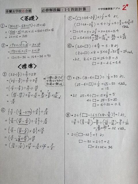 <紙送付>中学受験 香蘭女学校中等科 2026年合格算数コンプリートプリント