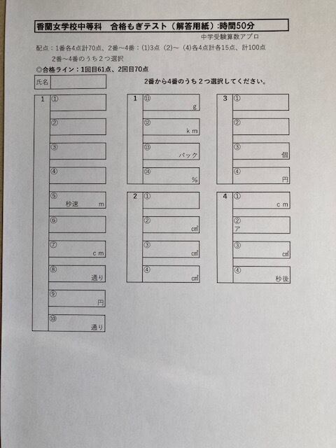 こちらのプリントのおかげで、なんと本番では全部の問題を解けたようでしたので本当に感謝しております。