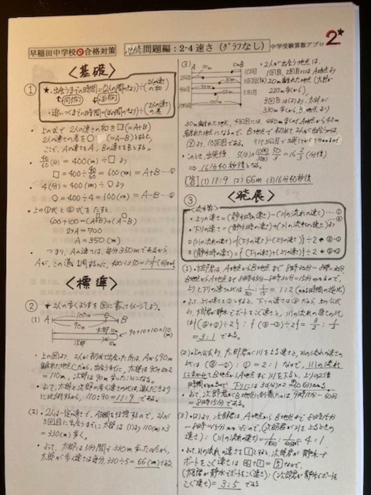 <紙送付>中学受験 早稲田中学校 2026年合格算数コンプリートプリント