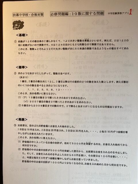 渋谷幕張一次2024年1番(1)が、合格へ算数プリント必修5-2にそっくり出題!