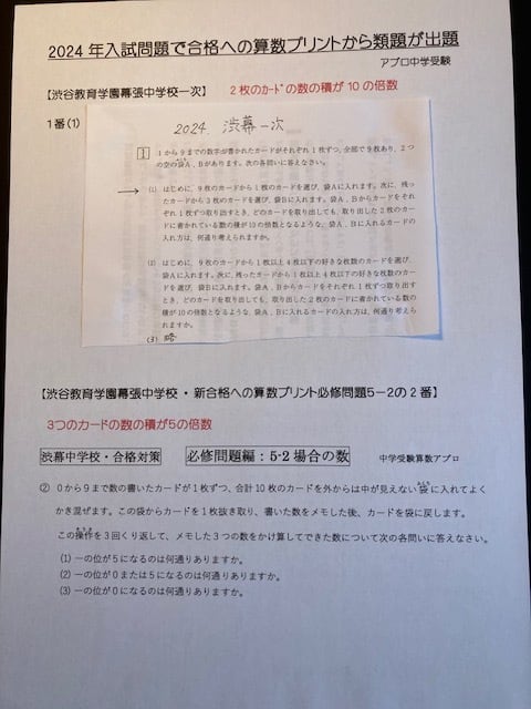 <紙送付>渋谷教育学園幕張中学校 2026年合格算数コンプリートプリント ★2024年入試問題・的中!