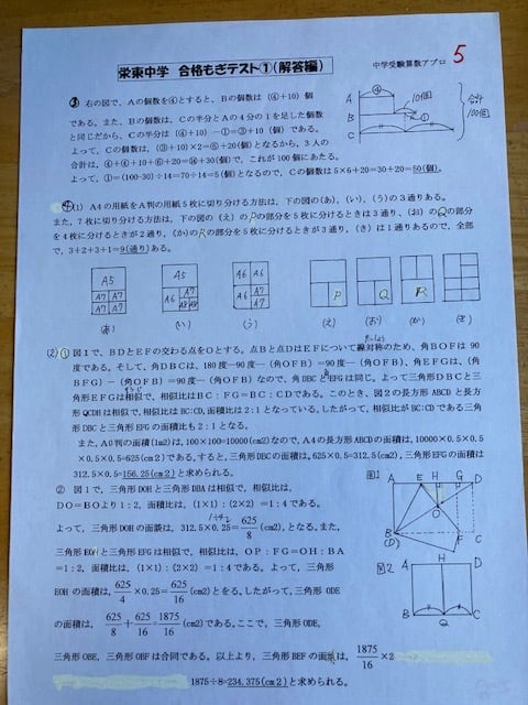 そちらの算数理科の入試にも、プリントが役に立った、やっておいてよかったと言っていました。