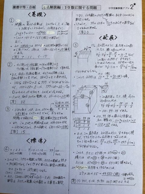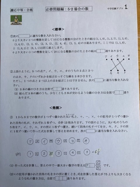 <紙送付>慶應義塾中等部 2026年合格算数コンプリートプリント ★2025年入試的中!