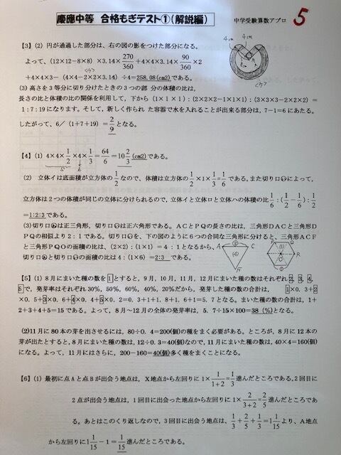そちらの算数理科の入試にも、プリントが役に立った、やっておいてよかったと言っていました。