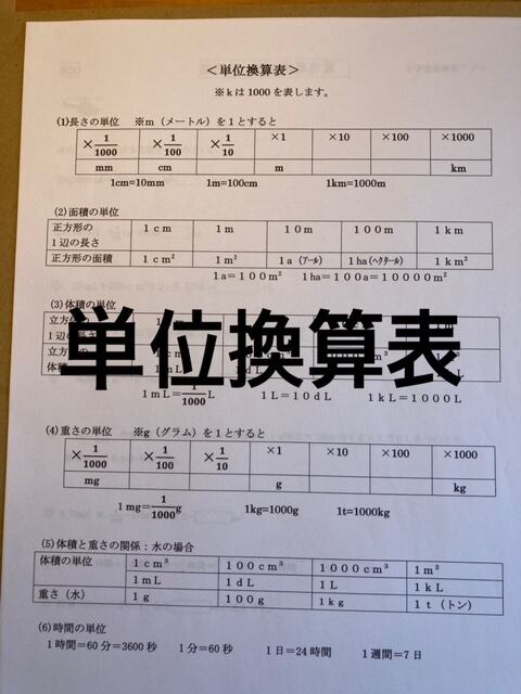 ●東京都市大学付属中学校:算数24ページ/ ※単位換算プリント(p3)