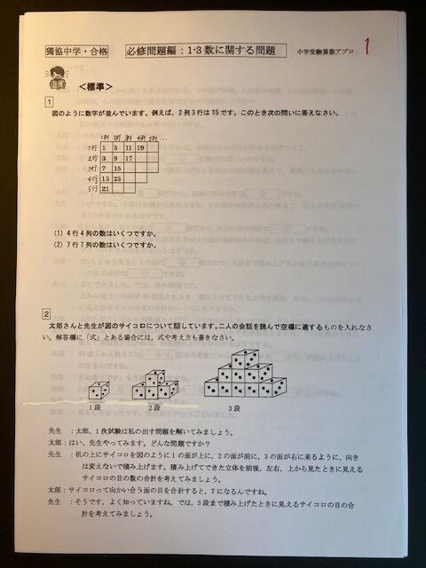 そちらの算数理科の入試にも、プリントが役に立った、やっておいてよかったと言っていました。