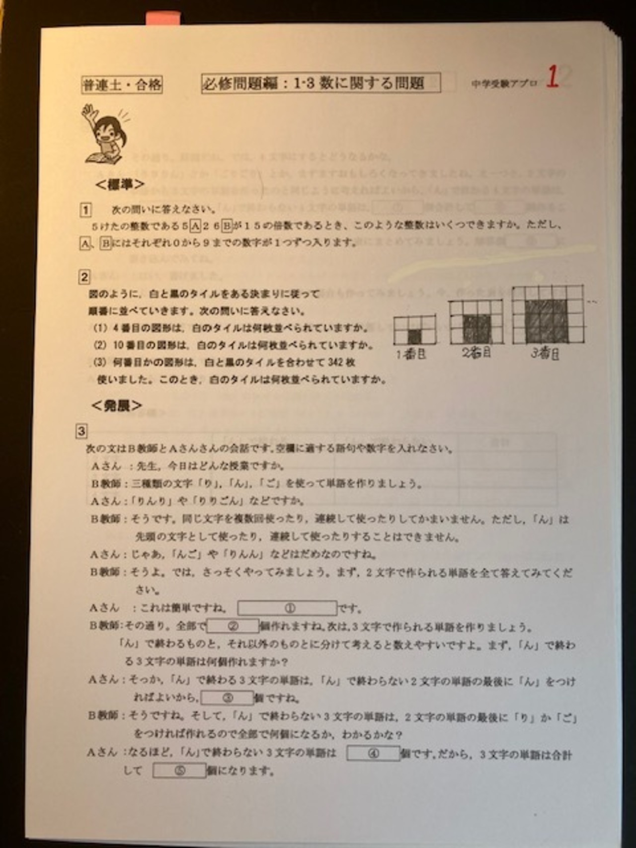 こちらのプリントのおかげで、なんと本番では全部の問題を解けたようでしたので本当に感謝しております。