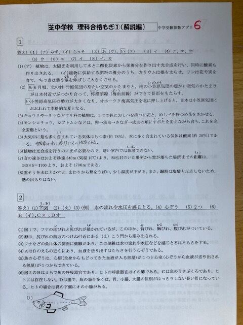 <紙送付>中学受験 芝中学校 2026年合格への理科プリント