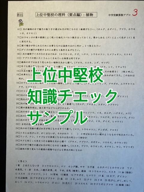 そちらの算数理科の入試にも、プリントが役にたった、やっておいて