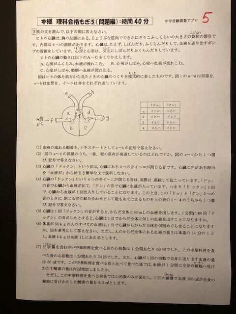 アプロ中学受験の算数と理科プリントで、国学院久我山の一般試験に