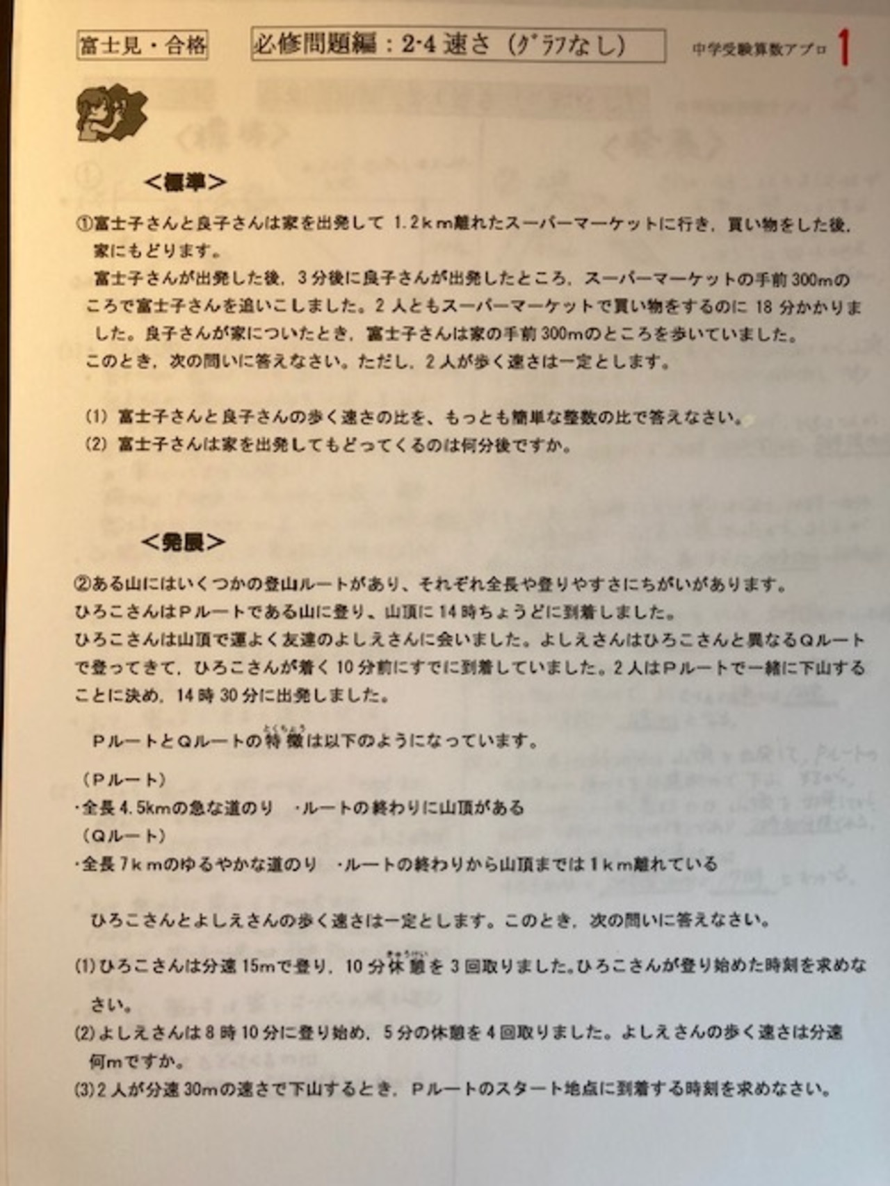 2025年入試 第1回1番(5)が、富士見中学校 特訓プリント240D2番にそっくり出題!速さ(グラフなし)