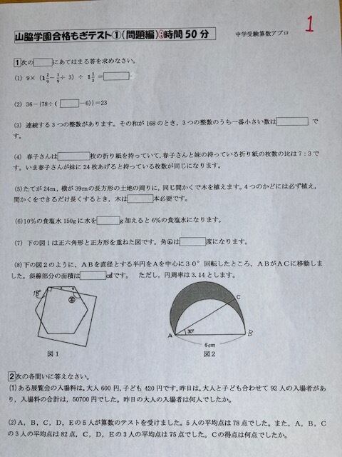 <紙送付>中学受験 山脇学園中学校 2026年合格算数コンプリートプリント